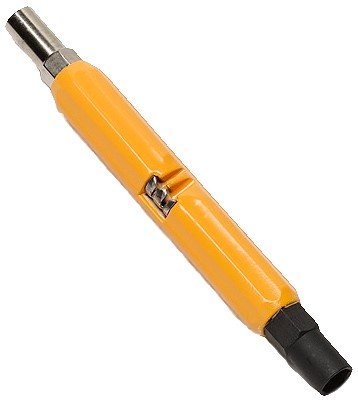 Can wrenches feature color-coded socket ends and built-in ribs on the barrel for user comfort, safety, and greater torque power. The two hex head sockets (7/16 inch and 3/8 inch) have reduced outside diameters that fit all new network interface devices. The 7/16 inch is black oxidized to easily distinguish it from the 3/8 inch zinc-plated socket end. Separate models of the can wrench are available with wire strippers built into the barrel. The stripper head has two slots with one slot for the outside jacket of a 4-wire "quad", and the other slot for individual conductors (22-gauge model or 24-gauge model).