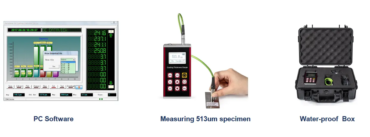 ●Standard delivery with 5 calibration specimens (48.5m、99.8m、249m、513m、1024m)