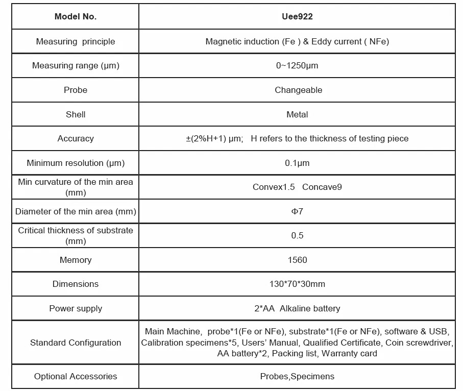 ●Magnetic Induction (Fe): Measuring the thickness of Non-magnetic coating on magnetic metal substrate, such