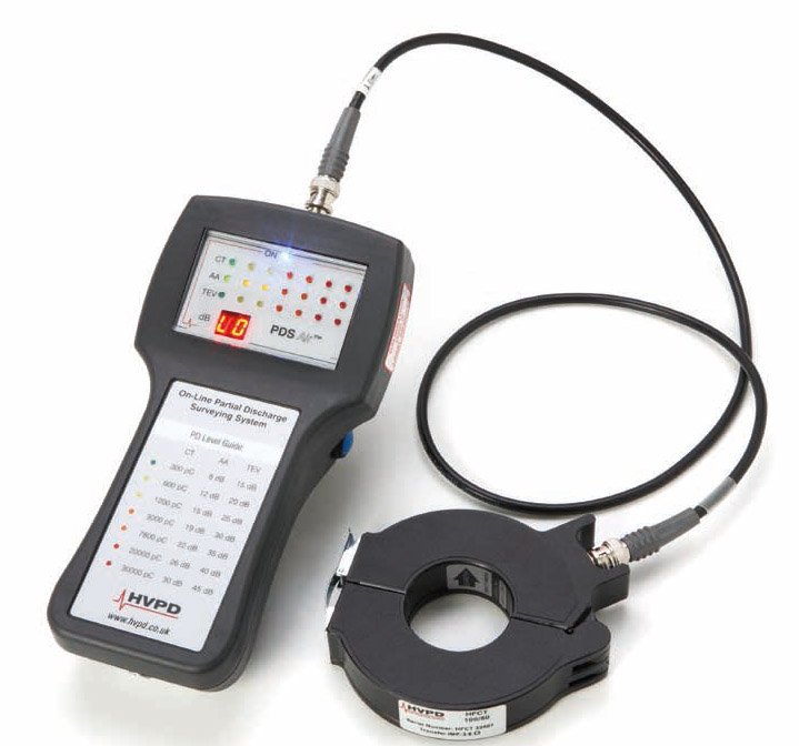 *New* - The PDS Air™ partial discharge surveying tool from HVPD represents the very latest in handheld PD test technology. Incorporating a digital TEV-dB display and external airborne acoustic probes, the test unit provides the 'first-line of defence' for the early detection of PD activity in MV cables and plant from 3.3 kV to 45 kV. Rapid, 'look-see' insulation condition testing is possible through the unique combination of three PD measurement technologies: HFCT, TEV and Airborne Acoustic.